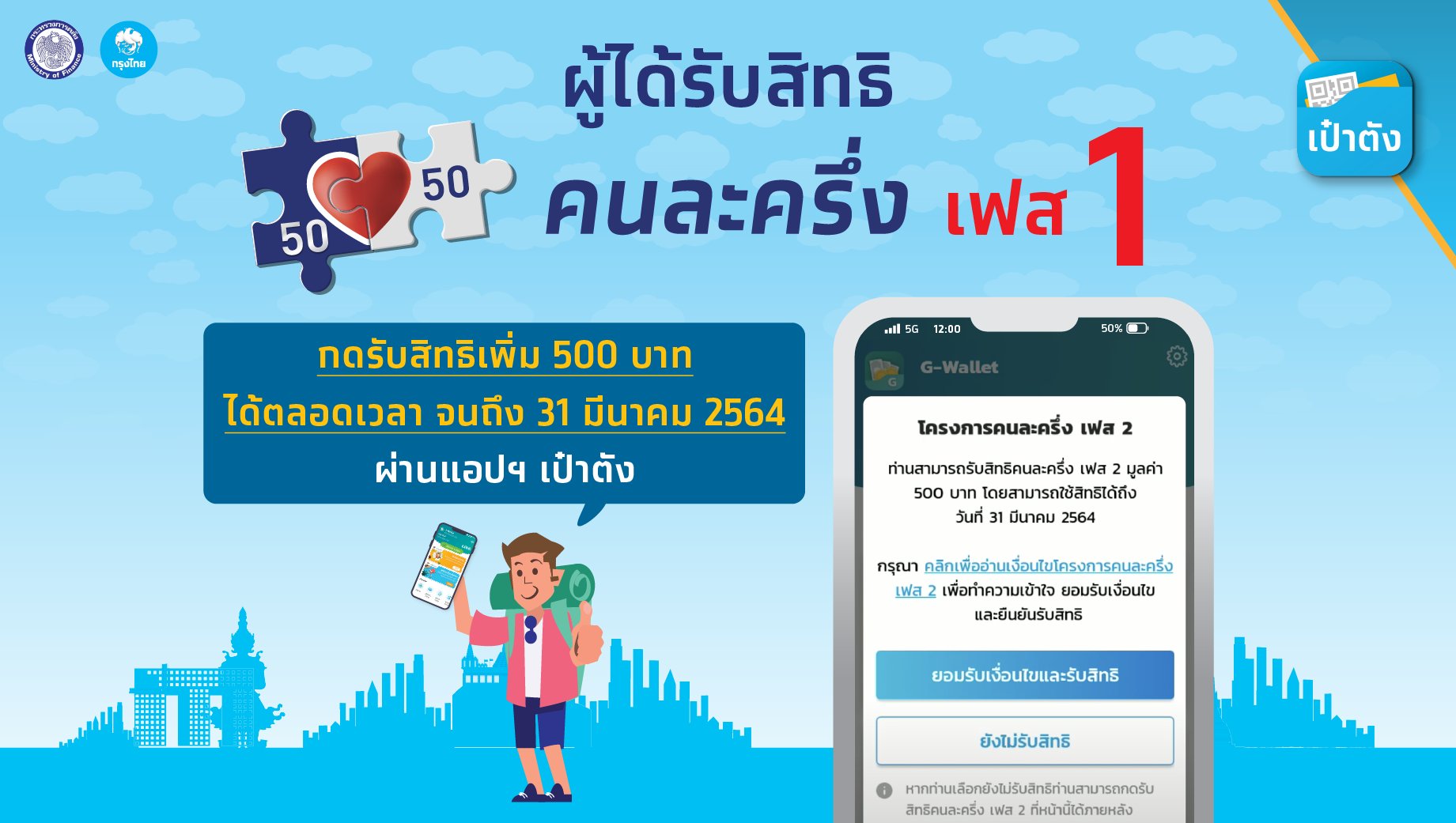 คนละครึ่งเฟส3 กลุ่มแอปเป๋าตังกดยืนยันรับสิทธิ วันแรกเพื่อรับเงินเยียวยา 1500 บาท ได้เมื่อไหร่เช็กที่นี่.